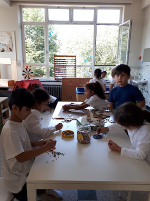 De kinderen van het eerste leerjaar zijn super fier op de letters die ze al kunnen schrijven. Hier tonen ze vol trots de 'aa' aan elkaar op het grote bord.